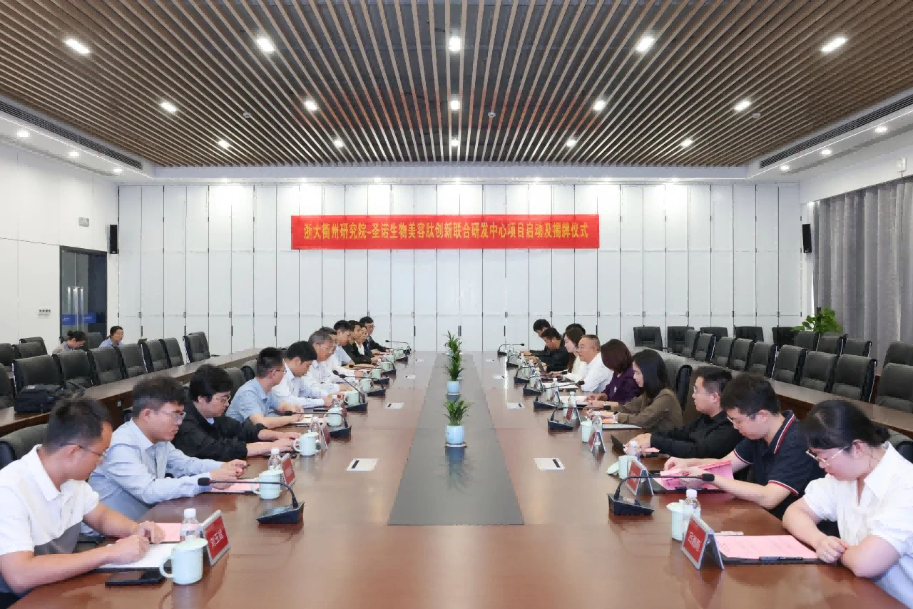 2024年10月14日,“浙江大學(xué)衢州研究院-圣諾生物美容肽創(chuàng)新聯(lián)合研發(fā)中心” 項(xiàng)目啟動(dòng)及揭牌儀式在浙江大學(xué)衢州常山港院區(qū)隆重舉行。