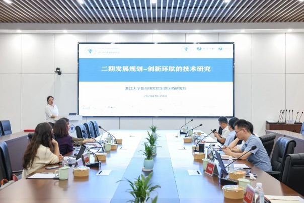 簽約儀式結(jié)束后,圣諾多肽團(tuán)隊(duì)參觀了浙江大學(xué)衢州研究院的展廳、分測(cè)測(cè)試中心、生物醫(yī)藥研究所相關(guān)創(chuàng)新實(shí)驗(yàn)室、中試基地等。后續(xù)浙江大學(xué)衢州研究院生物醫(yī)藥研究所相關(guān)科研團(tuán)隊(duì)詳細(xì)匯報(bào)了此次合作研發(fā)的項(xiàng)目目標(biāo)、技術(shù)方案和試驗(yàn)進(jìn)展等,并就存在的問題和下一步工作計(jì)劃進(jìn)行了深入交流探討。